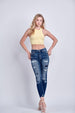 SUPER stretch denim / REPAIR PATCH SIDTRESSED DETAIL / HIGH RISE