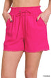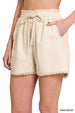 The Linen Frayed Hem Drawstring Shorts with Pockets are a stylish and comfortable choice for warm weather. The raw edge details give them a trendy, relaxed look, perfect for casual outings. The drawstring elastic waist allows for easy adjustment and ensures a comfortable fit. With side pockets, you'll have convenient storage for your essentials while on the go. These shorts are a great addition to your summer wardrobe, combining fashion and functionality for a laid-back and cool style.