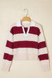 Meet Olivia Knitted Polo Collar Sweater—effortless, flattering, and easy to style for everyday life. This knit sweater is fashionable and full with British style. The polo collar design makes it modest and generous. It’s very eye-catching with a color block silhouette. The cropped length gives a modern touch to this knitwear. casual sweaters for women with latest fashion styles.