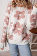 The intricate floral design adds a touch of femininity to the classic rib-knit fabric, blending vintage charm with modern comfort.